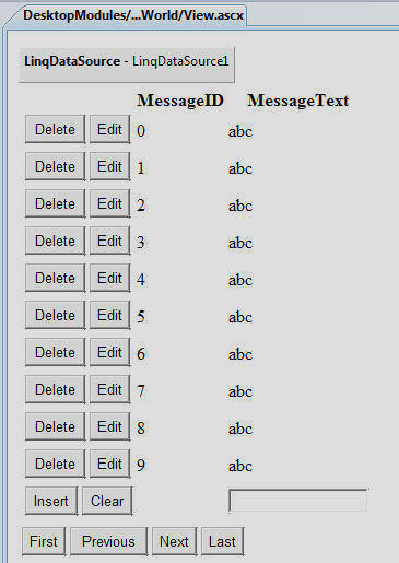 From the Toolbox, select the LinqDataSource control. Drag the control onto the View.ascx page.