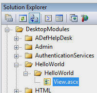 In the Solution Explorer, you will see the HelloWorld module under the DesktopModules folder