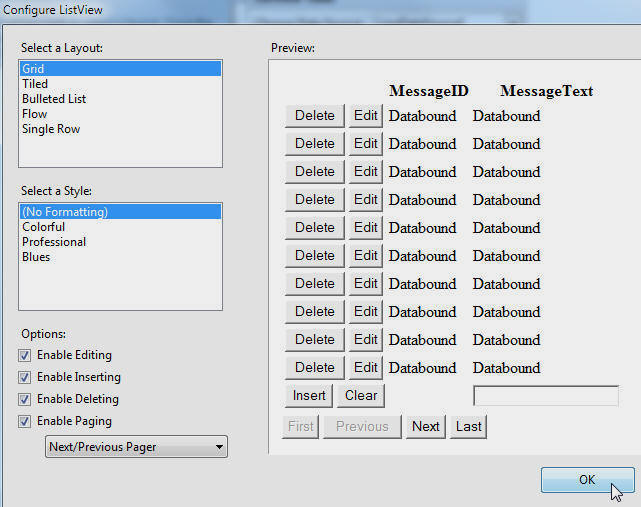 From the Toolbox, select the ListView control. Drag the control onto the View.ascx page.
