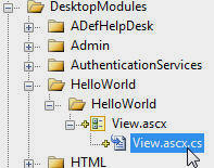 In the Solution Explorer, you will see the HelloWorld module under the DesktopModules folder.